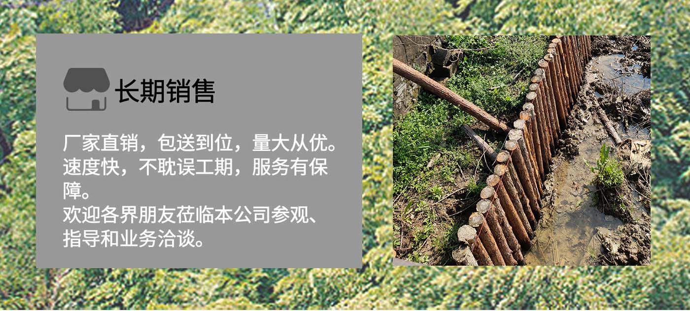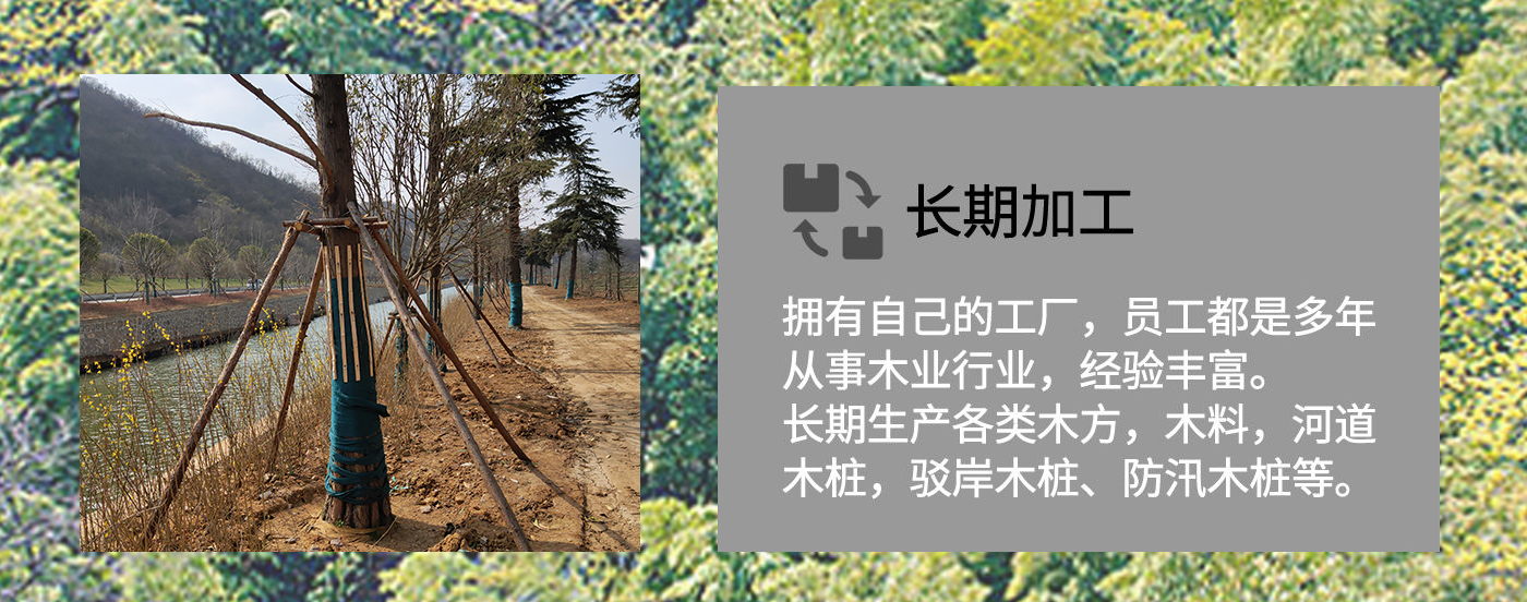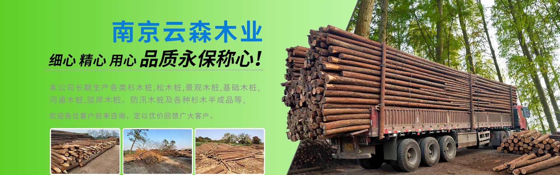 南京市云森木業(yè)有限公司位于南京市高淳區(qū)。是一家生產(chǎn)加工,線上銷售為一體的現(xiàn)代化企業(yè)。擁有完善、科學(xué)的質(zhì)量管理體系及工作團隊。 公司主營松木樁,杉木樁,打樁木,河道木樁,駁岸木樁,防汛木樁,景觀木樁、園林綠化支撐桿等,也可支持方料,木板等木材定制加工產(chǎn)品,所選原材料均為黃山中心林區(qū),樹齡均在三十年左右。質(zhì)地緊密,樹形優(yōu)美。 本公司貨源充足,供貨能力強,地處高淳,交通方便利,江浙滬皖送貨上門,當天可達。本著“誠信為本,客戶至上”的經(jīng)營宗旨,真誠希望與您合作。 歡迎各位客戶前來咨詢,定以優(yōu)良品質(zhì)和價格回饋廣大客戶。
